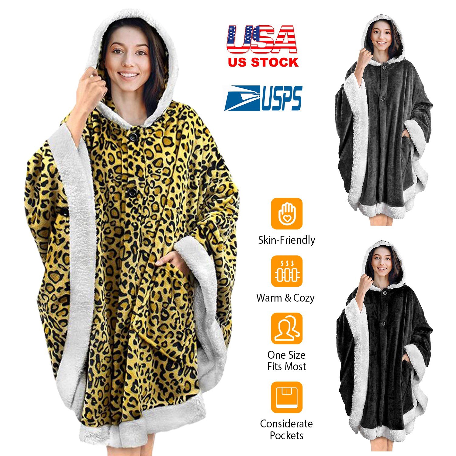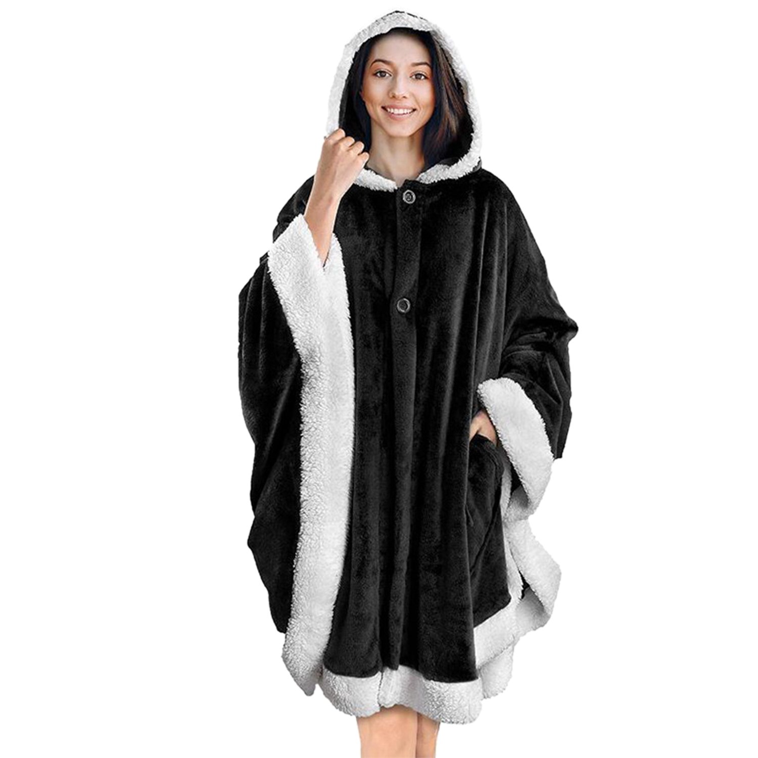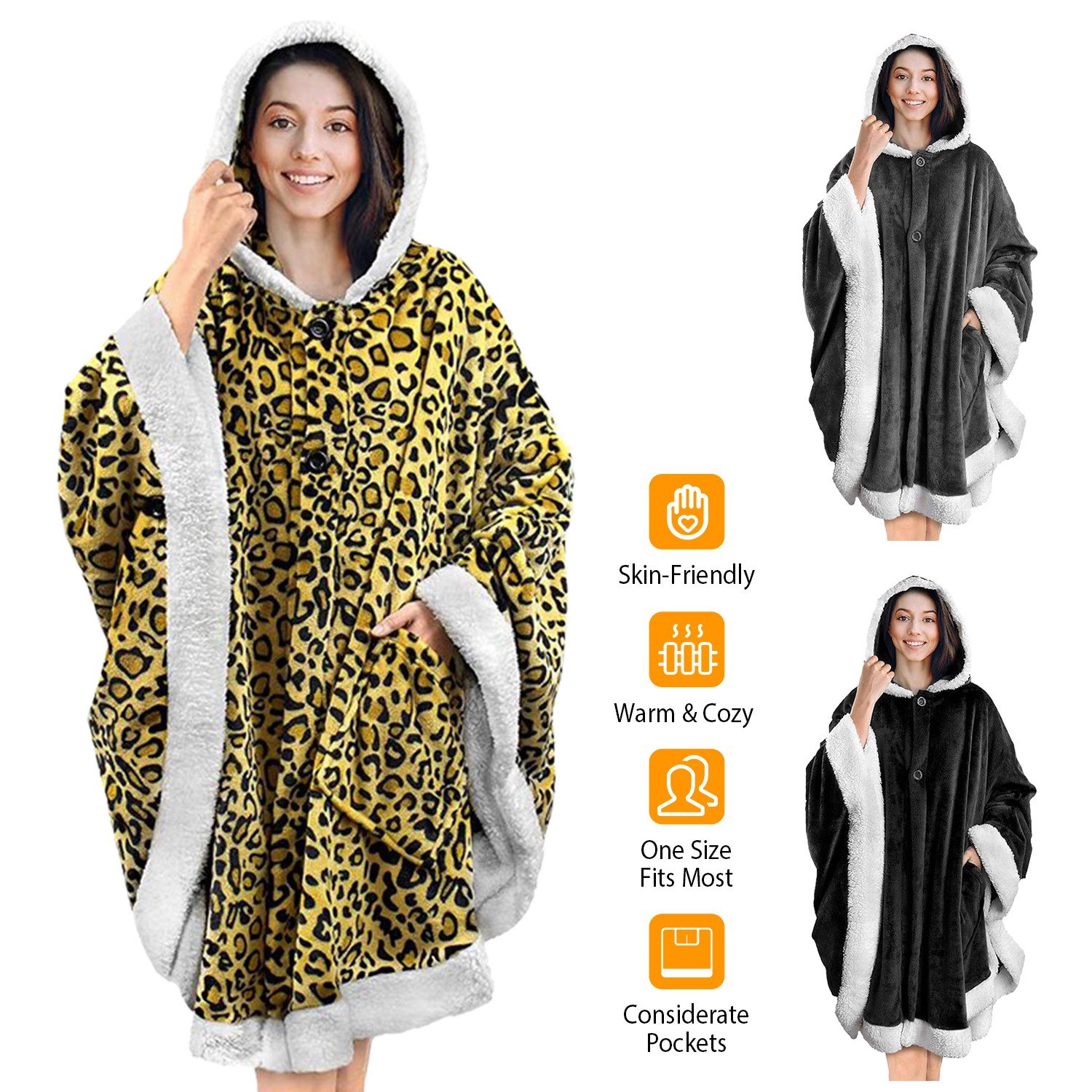 Home > Hoodie Blanket Wrap Wearable Hoodie Snuggle Robe Sweatshirt Soft Lined Cuddle Poncho Cape w/ Hat 2 Pockets Buttons