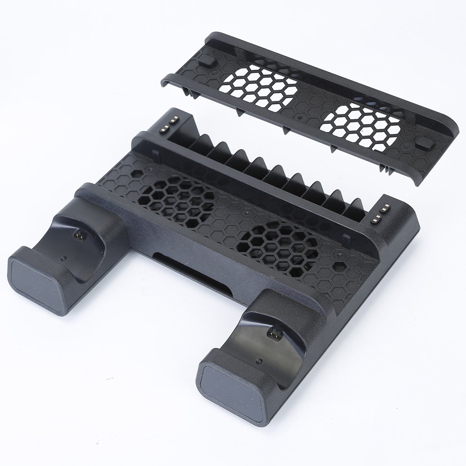 Cooling Station Vertical Stand Dual Controller Charging Dock Fit For Play Station 4/PS4 Slim/PS4 Pro with Dual Fans LED Indicators 10Pcs Game Disk Sto