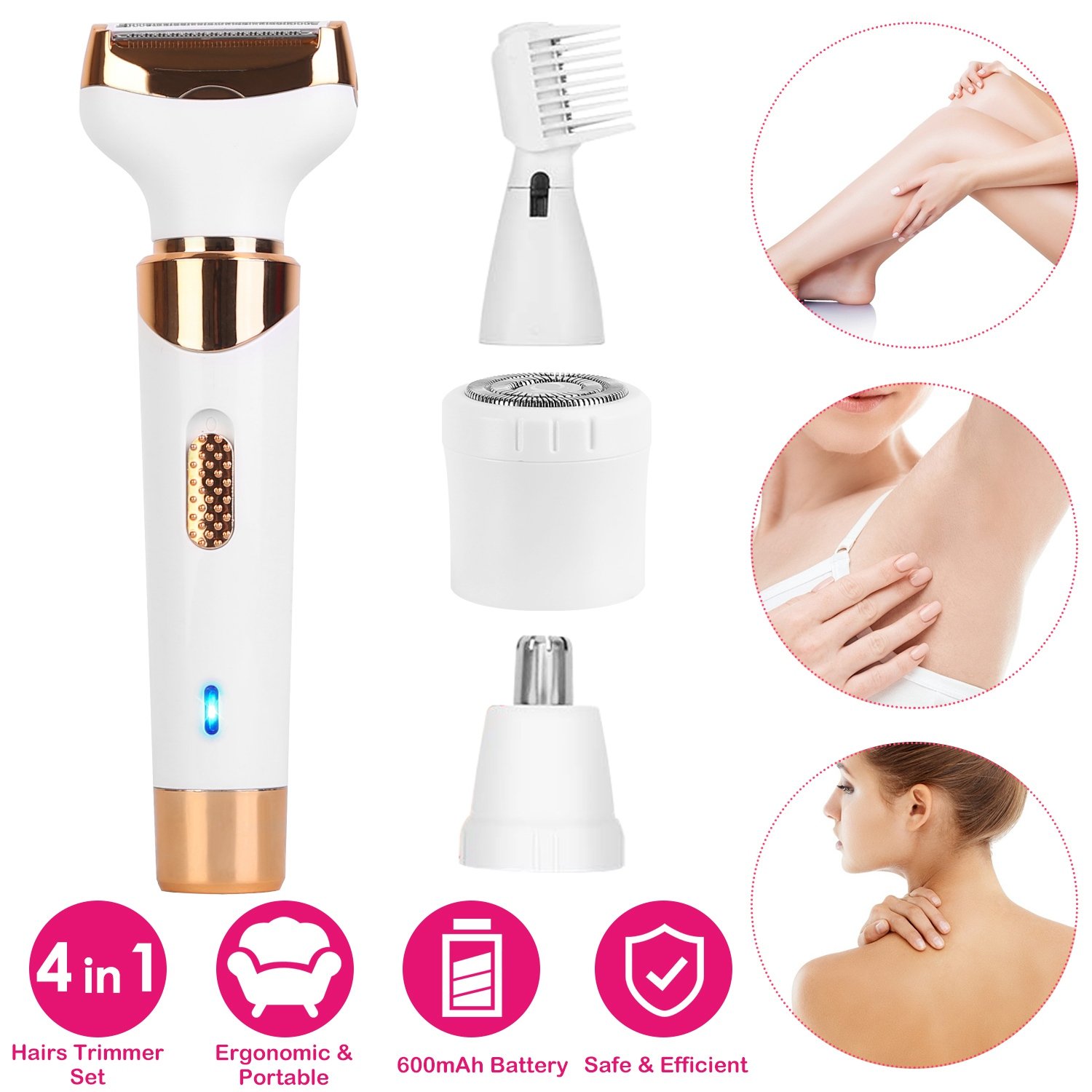 Home > 4 In 1 Women Electric Hair Shaver USB Rechargeable Hair Remover Cordless Eyebrow Nose Hair Trimmer Painless Hair Clipper Set for Bikini Leg Wet Dry Us