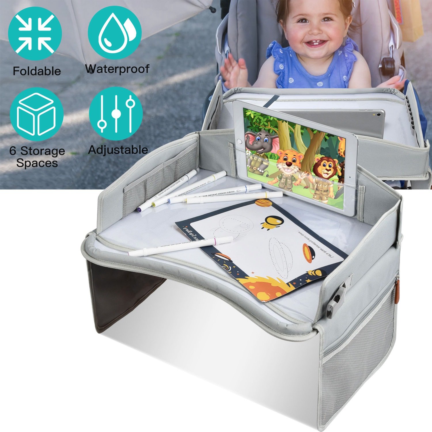 Home > Kids Travel Tray Toddler Car Seat Lap Tray Kids Road Trip Table Tray for Car Truck SUV Airplane Stroller Picnic Restaurant Camping Eating Drawing Tabl