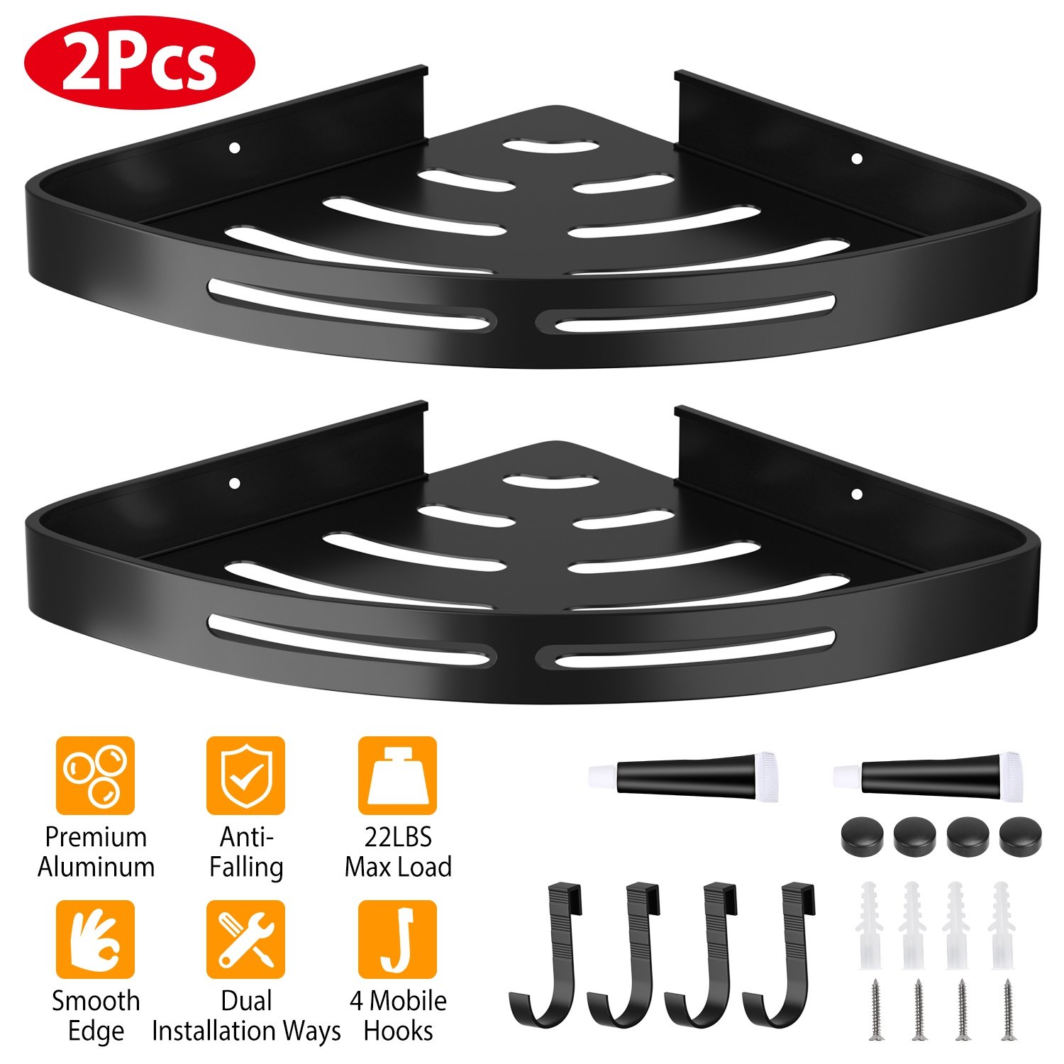 2Pcs Corner Shower Caddy Shelf Adhesive Bathroom Wall Mounted Storage Racks Aluminum No Drilling Organizers For Bathroom Toilet Kitchen Dorm