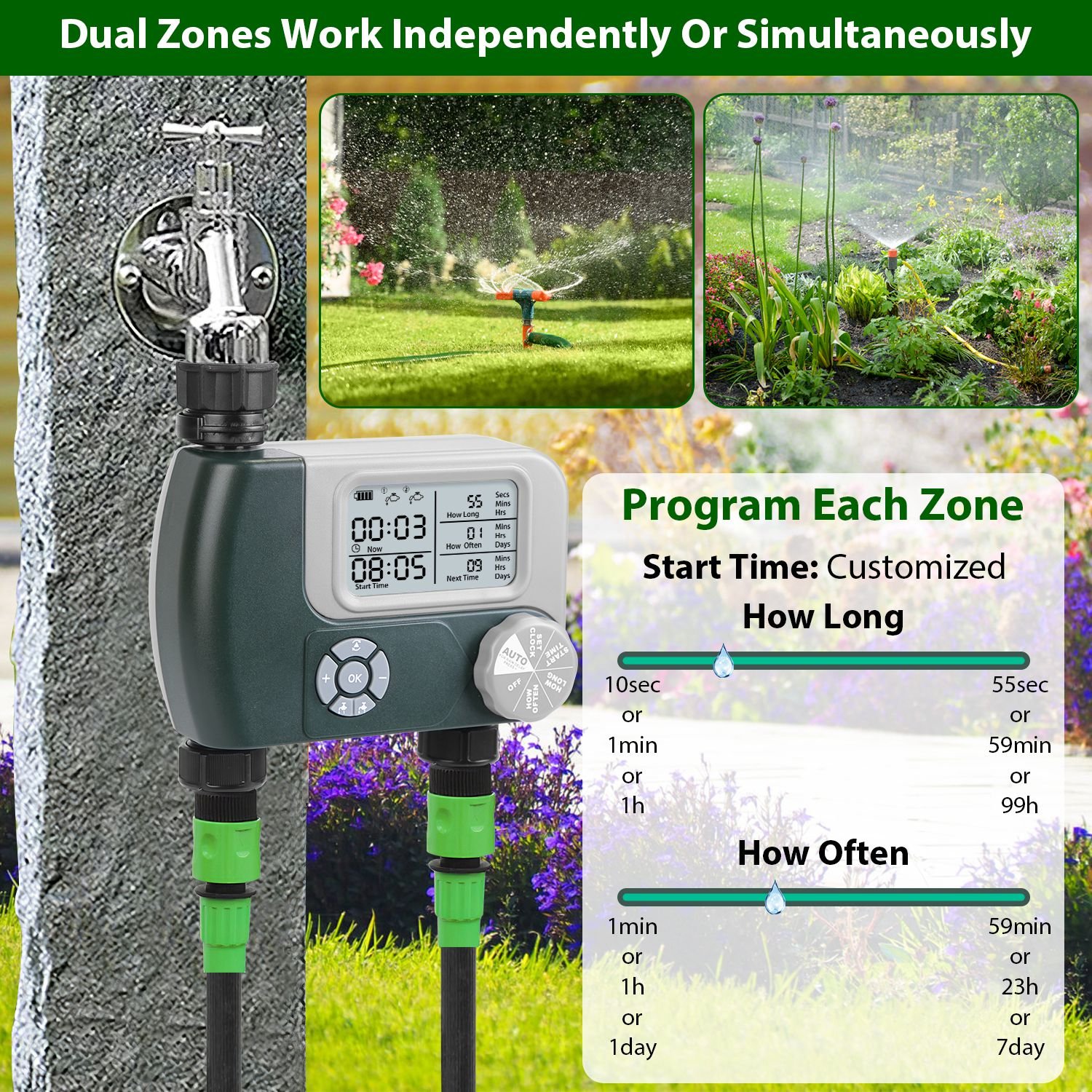 Home > Sprinkler Timer with 2 Outlet Zones Digital Programmable Hose Faucet Timer Manual Automatic Watering Intelligent Drip Irrigation System for Garden Yar