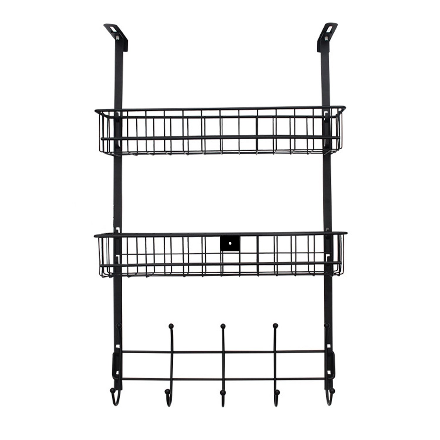 Home > Over The Door Hooks Organizer Door Towel Rack Hanger 5 Hooks with 2 Metal Baskets for Bathroom Bedroom Kitchen Storage Shelf