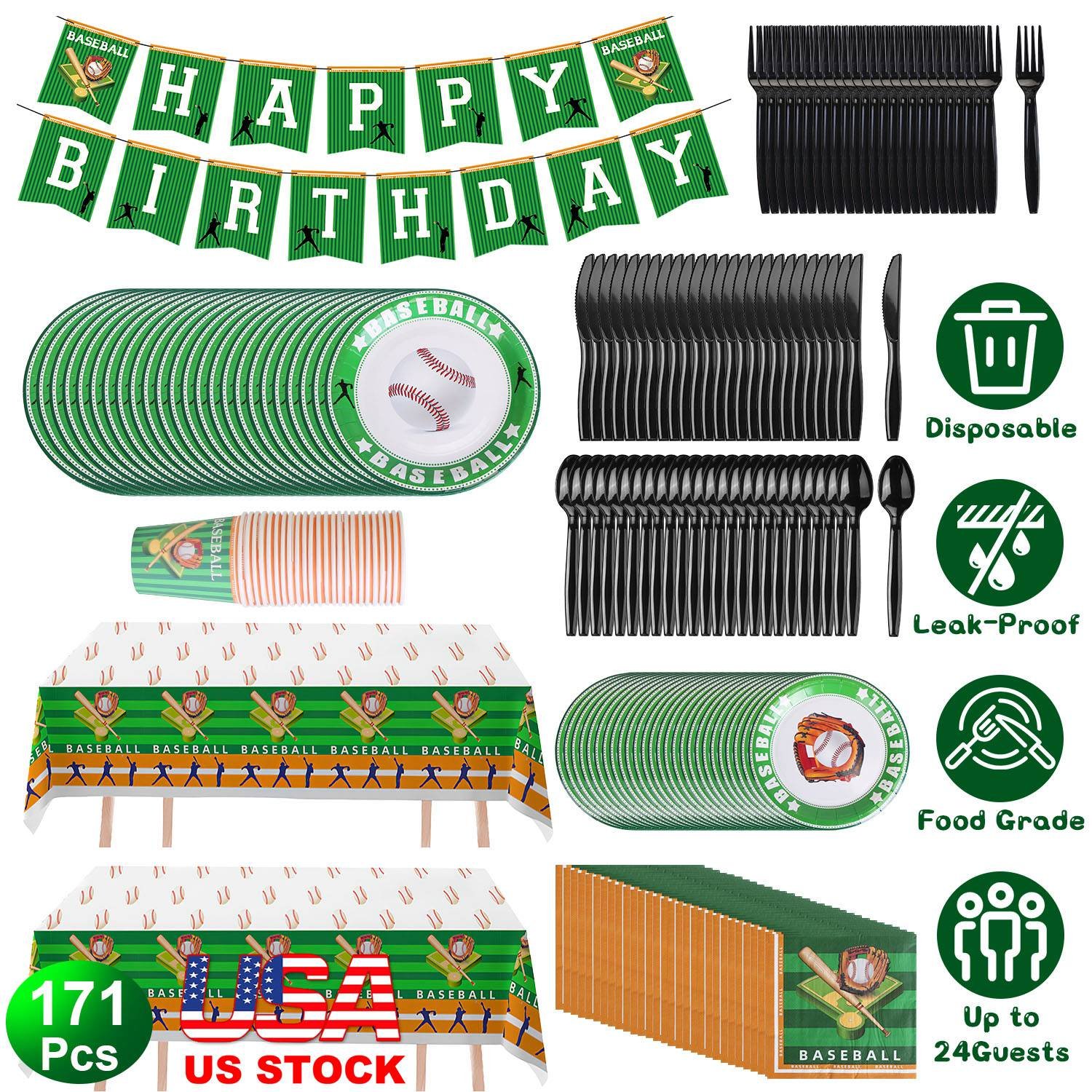 171Pcs Baseball Party Supplies Kit Baseball Birthday Party Disposable Dinnerware Set Baseball Themed Party Tableware Decorations Cups Plates Napkins S