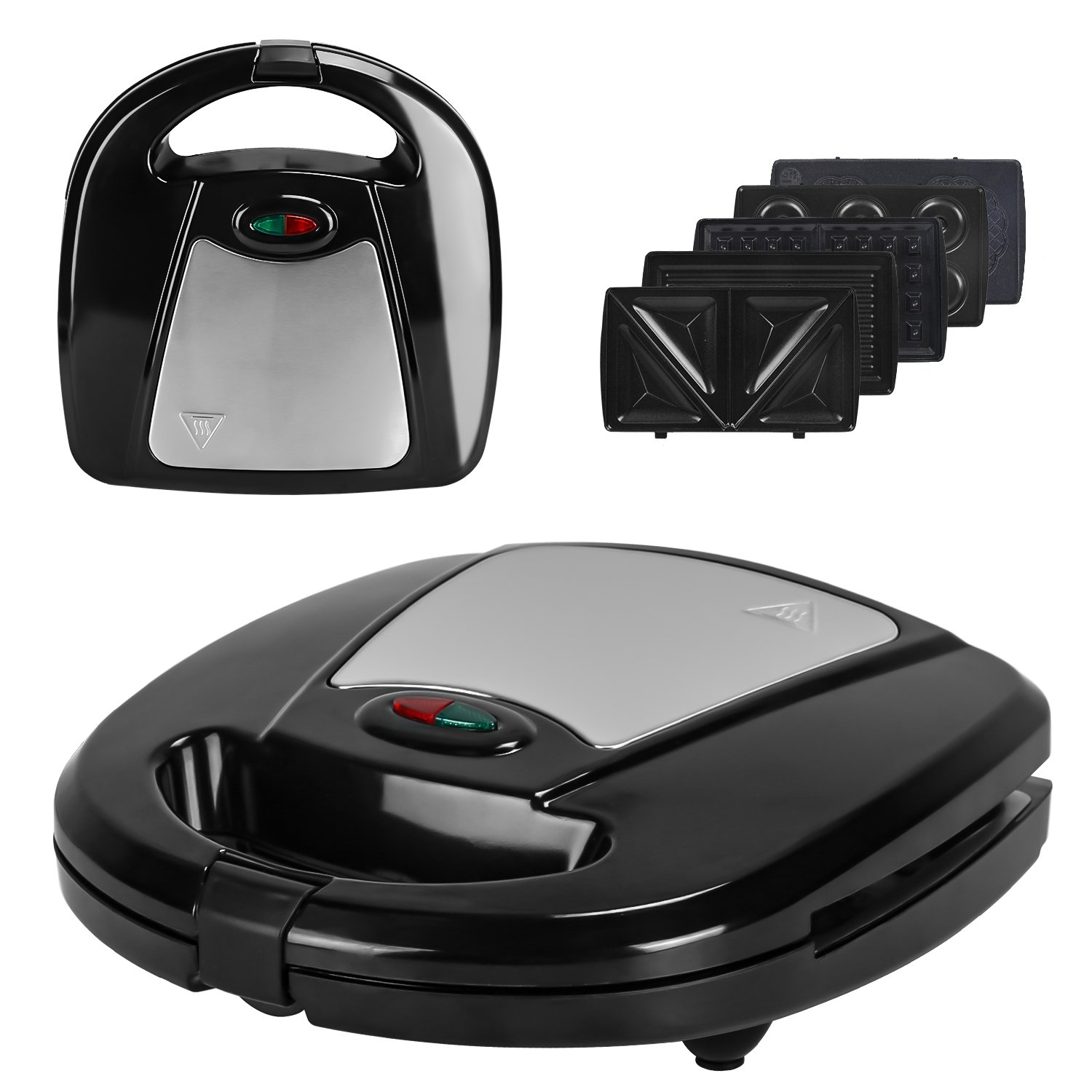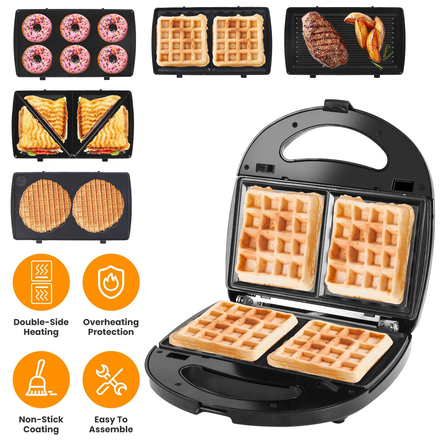 5 in 1 Electric Sandwich Maker Waffle Panini Press Grill Mini Donut Egg Roll with Removable Non-Stick Plates Cool Touch Handle For Breakfast Steak Toa