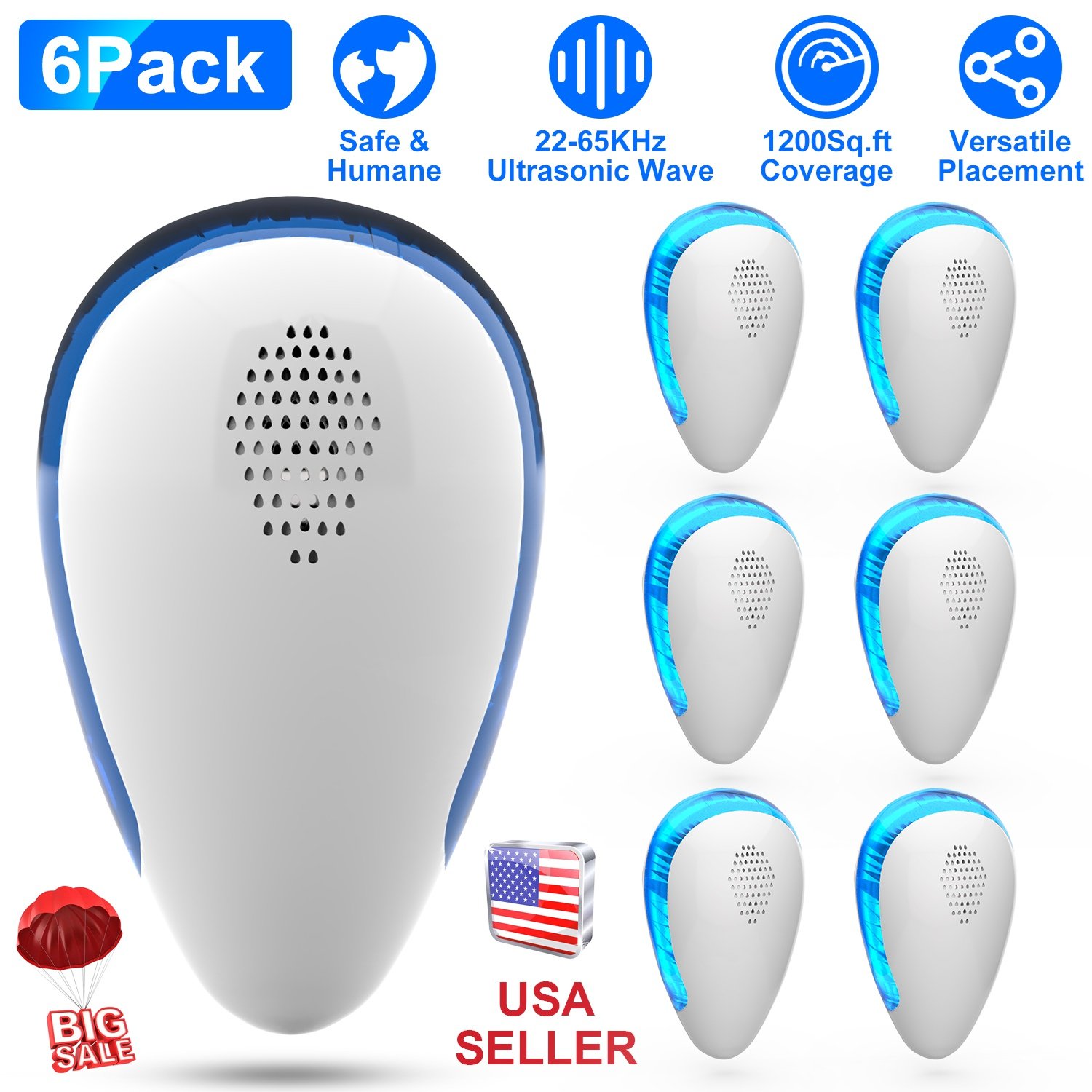 Home > 6 Pack Ultrasonic Pest Repeller Indoor Plug In Bug Repellent Mosquito Spider Ant Roaches Mice Control for Bedroom Garage Warehouse Office