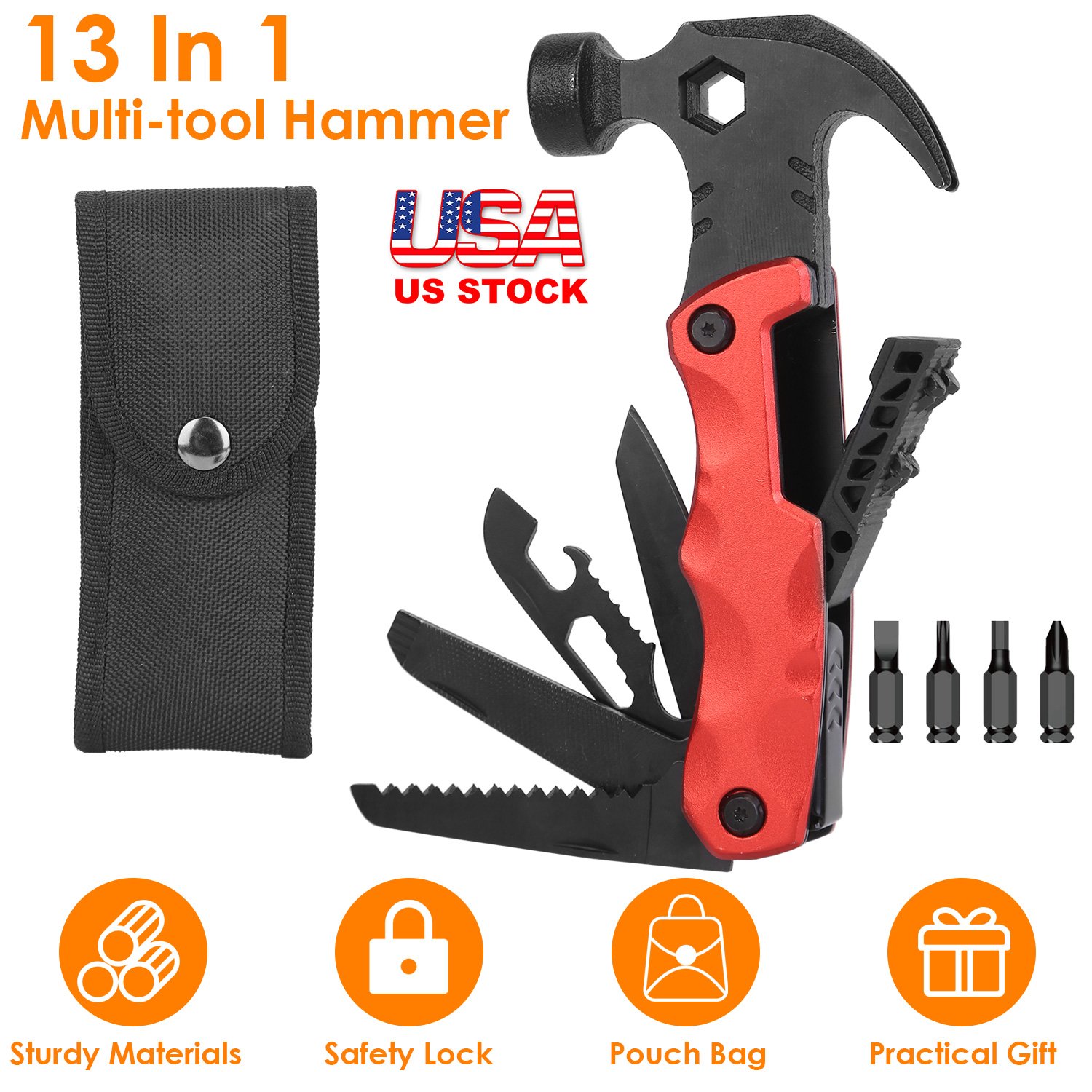 13 In 1 Multi-tool Hammer Outdoor Camping Survival Tools with Pouch Bag Safety Lock Nail Puller Knife Can Opener Saw Screw Depositor Screwdriver