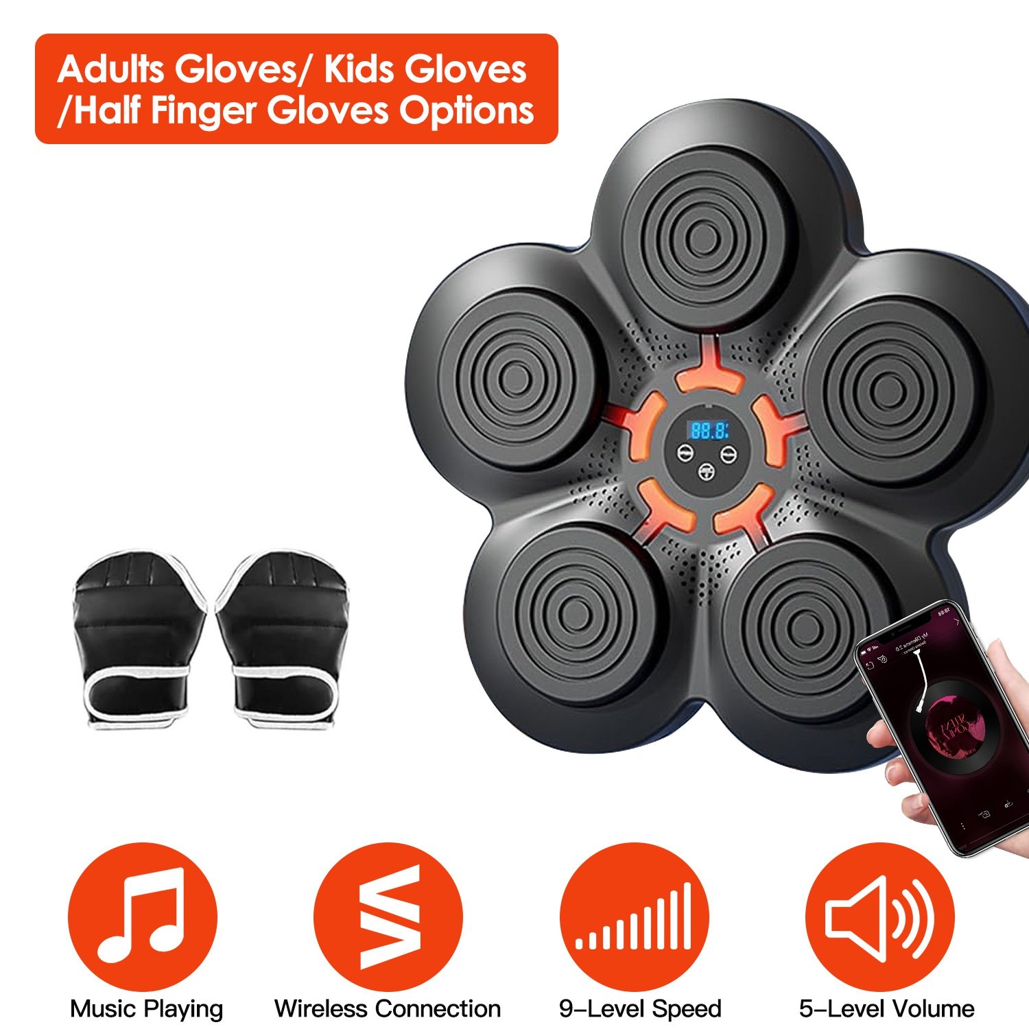Home > Music Boxing Machine Electronic Wall Target Punching Pad LED Lighted Sandbag Boxing Training Machine Exercise Equipment with Half Finger Boxing Gloves