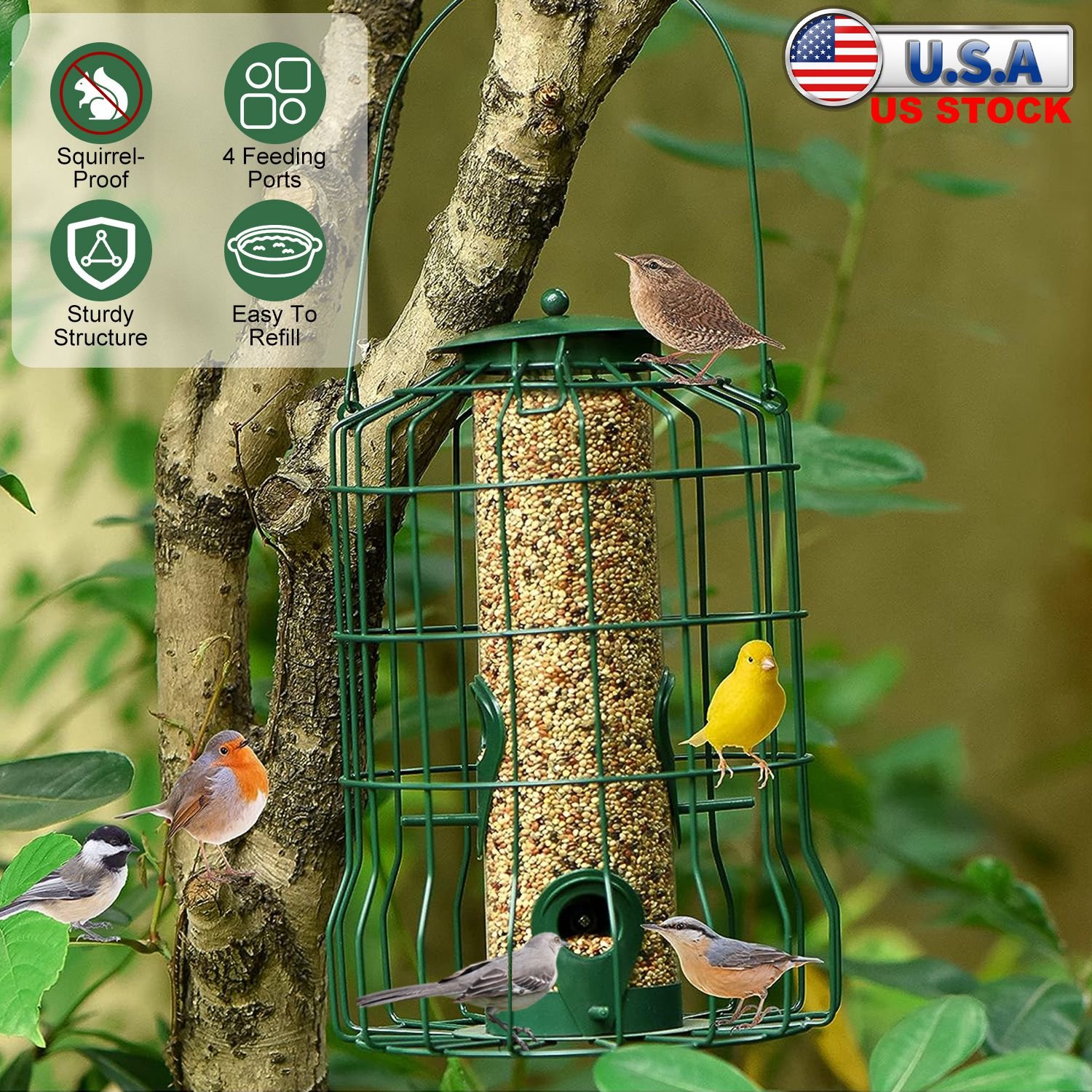 Outdoor Wild Bird Feeder Squirrel-Proof Chew-Proof Metal Hanging Seed Feeder with 4 Feeding Ports for Small Songbirds Outdoor Wild Bird Feeder Squirrel-Proof Chew-Proof Metal Hanging Seed Feeder with 4 Feeding Ports for Small Songbirds Outdoor Wild Bird Feeder Squirrel-Proof Chew-Proof Metal Hanging Seed Feeder with 4 Feeding Ports for Small Songbirds Outdoor Wild Bird Feeder Squirrel-Proof Chew-Proof Metal Hanging Seed Feeder with 4 Feeding Ports for Small Songbirds Outdoor Wild Bird Feeder Squirrel-Proof Chew-Proof Metal Hanging Seed Feeder with 4 Feeding Ports for Small Songbirds Outdoor Wild Bird Feeder Squirrel-Proof Chew-Proof Metal Hanging Seed Feeder with 4 Feeding Ports for Small Songbirds