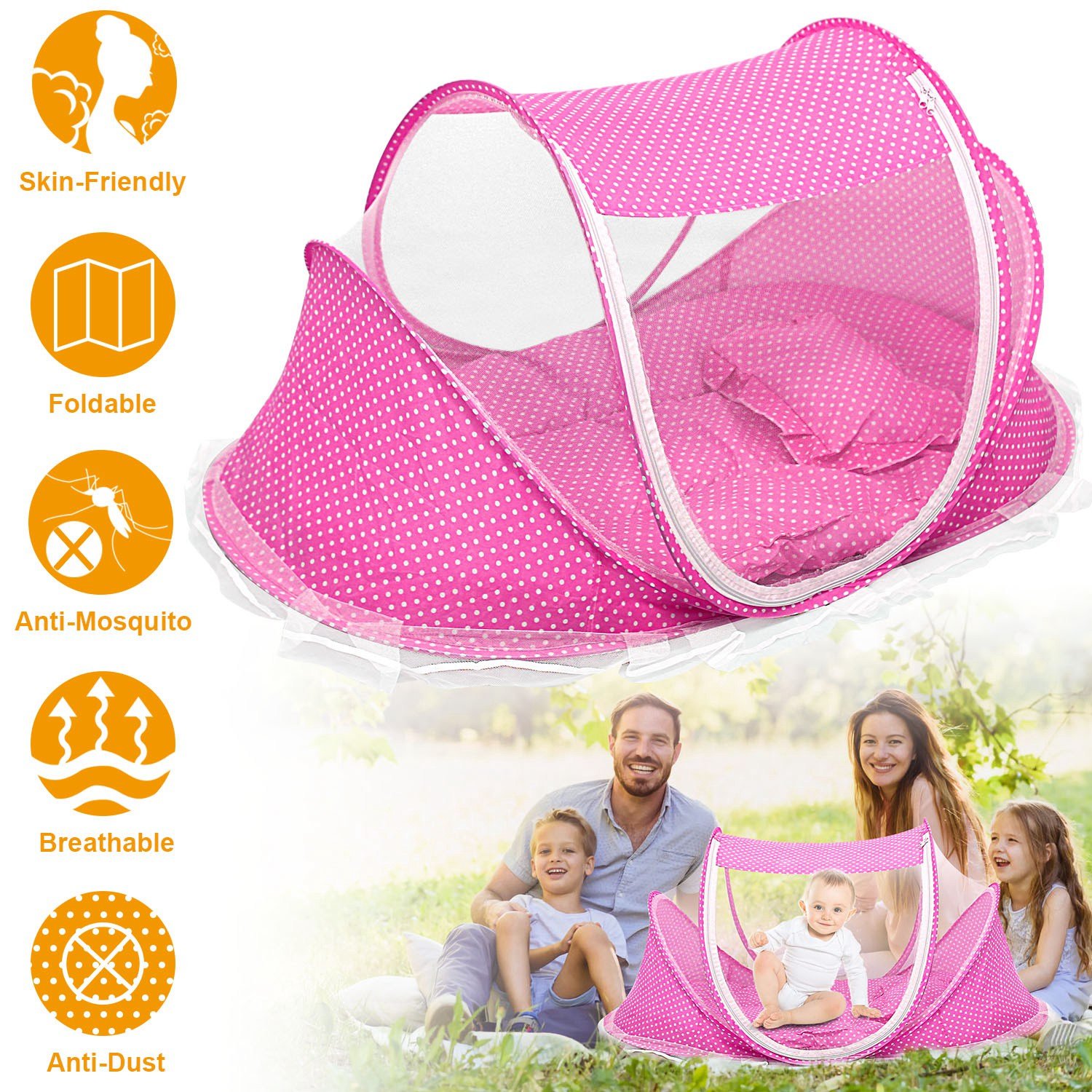 Home > Foldable Baby Travel Bed Portable Infant Mosquito Net Tent Crib Cradle w/ Pillow Mattress Music Box for 0-3 Kids