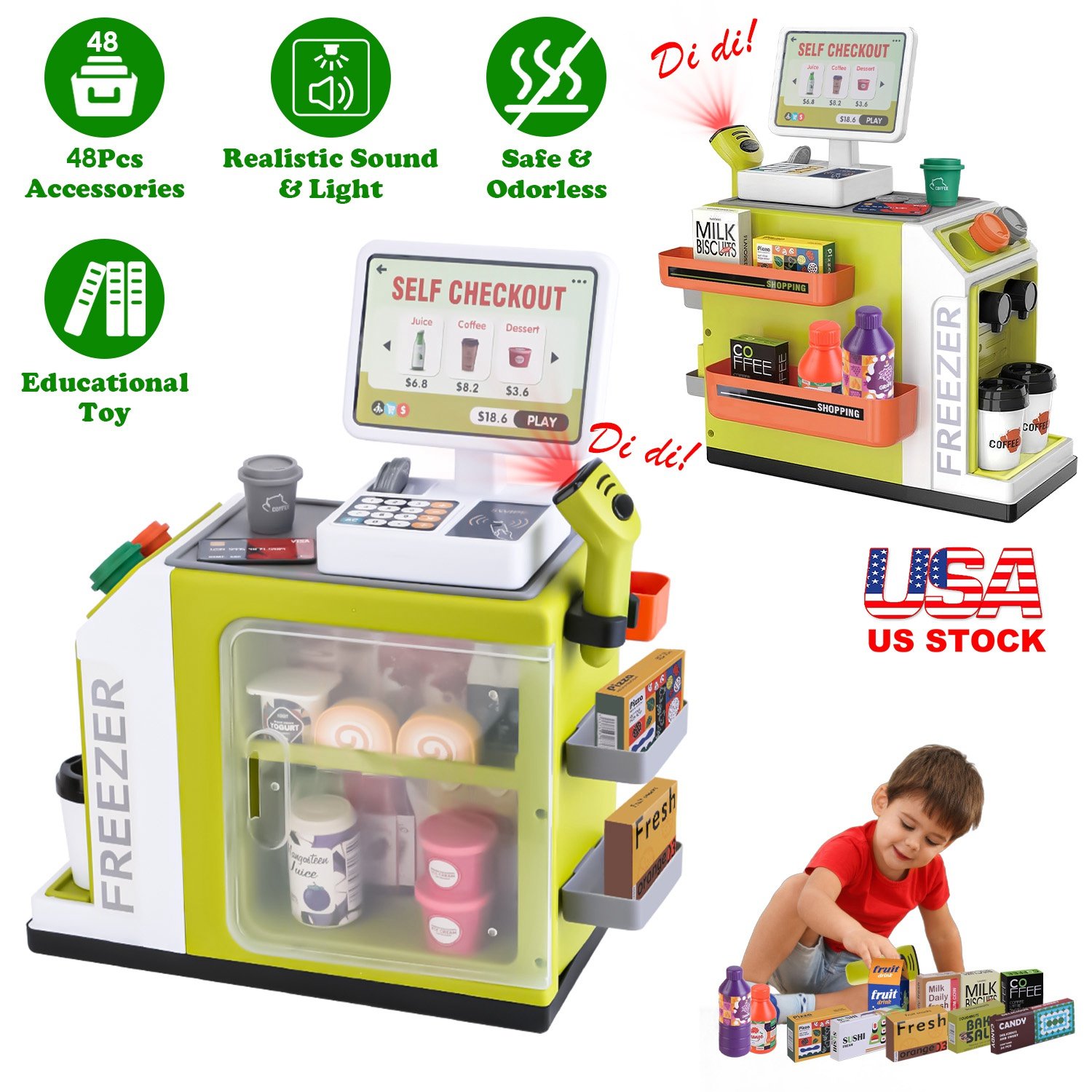 Home > 48Pcs Pretend Cash Register Play Toy Set With Scanner Play Cash Food Role Play Coffee Machine Grocery Store Mini Supermarket Playset For Boys Girls Ag